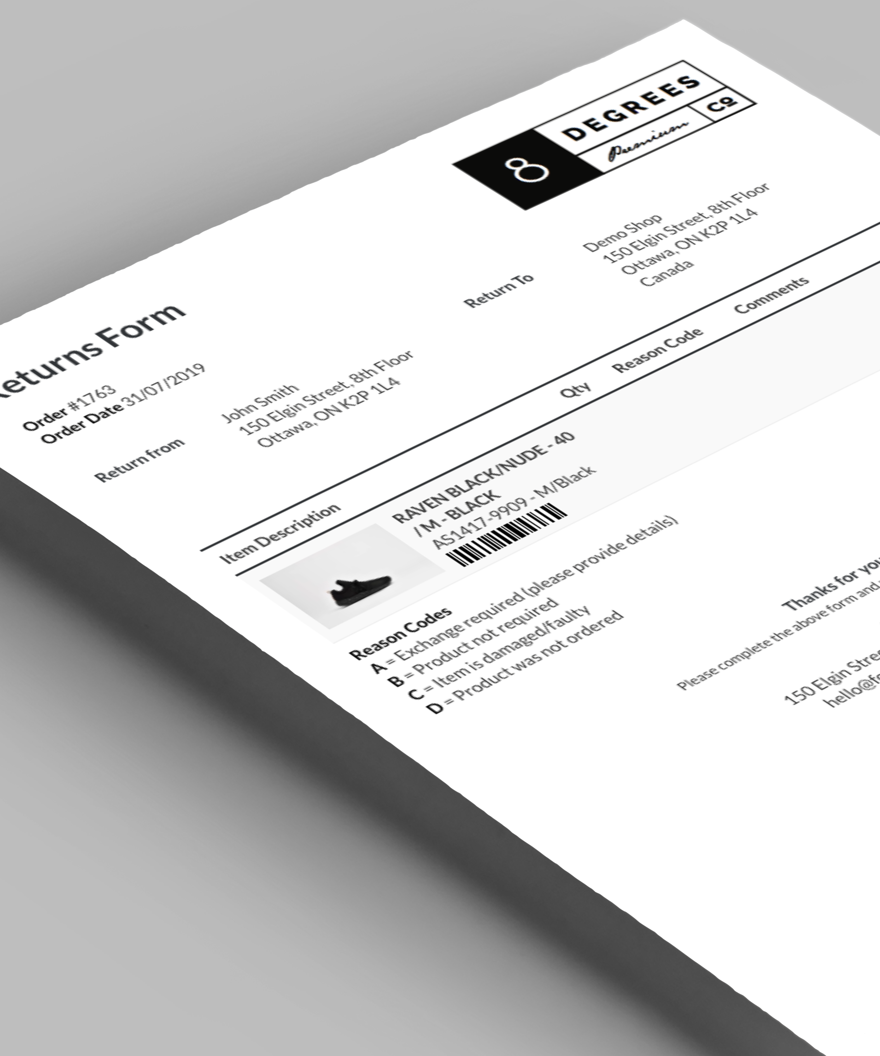 The perfect Returns Form to highlight your brand.